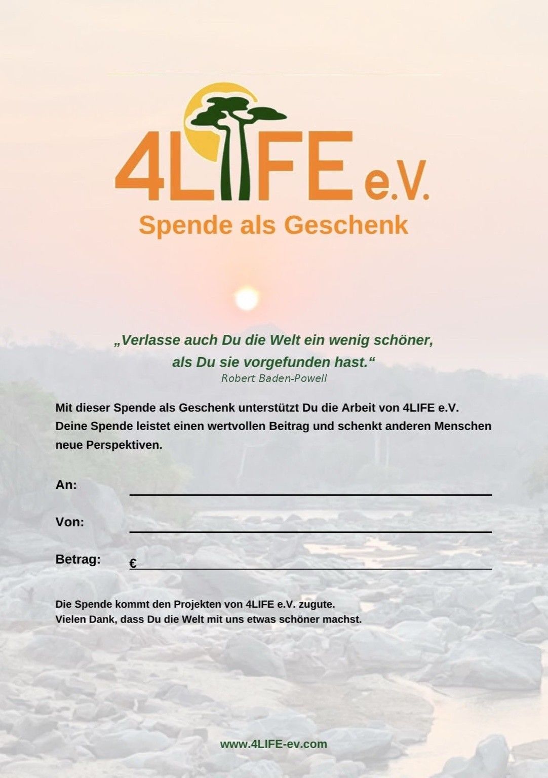 Mit Deiner Spende als Geschenk unterstützt Du nicht nur unsere Mission – Du schenkst auch einem lieben Menschen das Gefühl, ein Teil davon zu sein.
